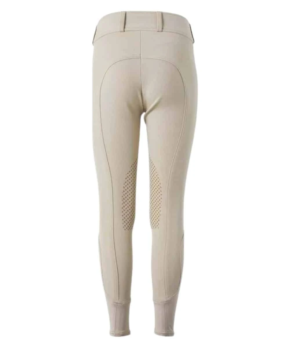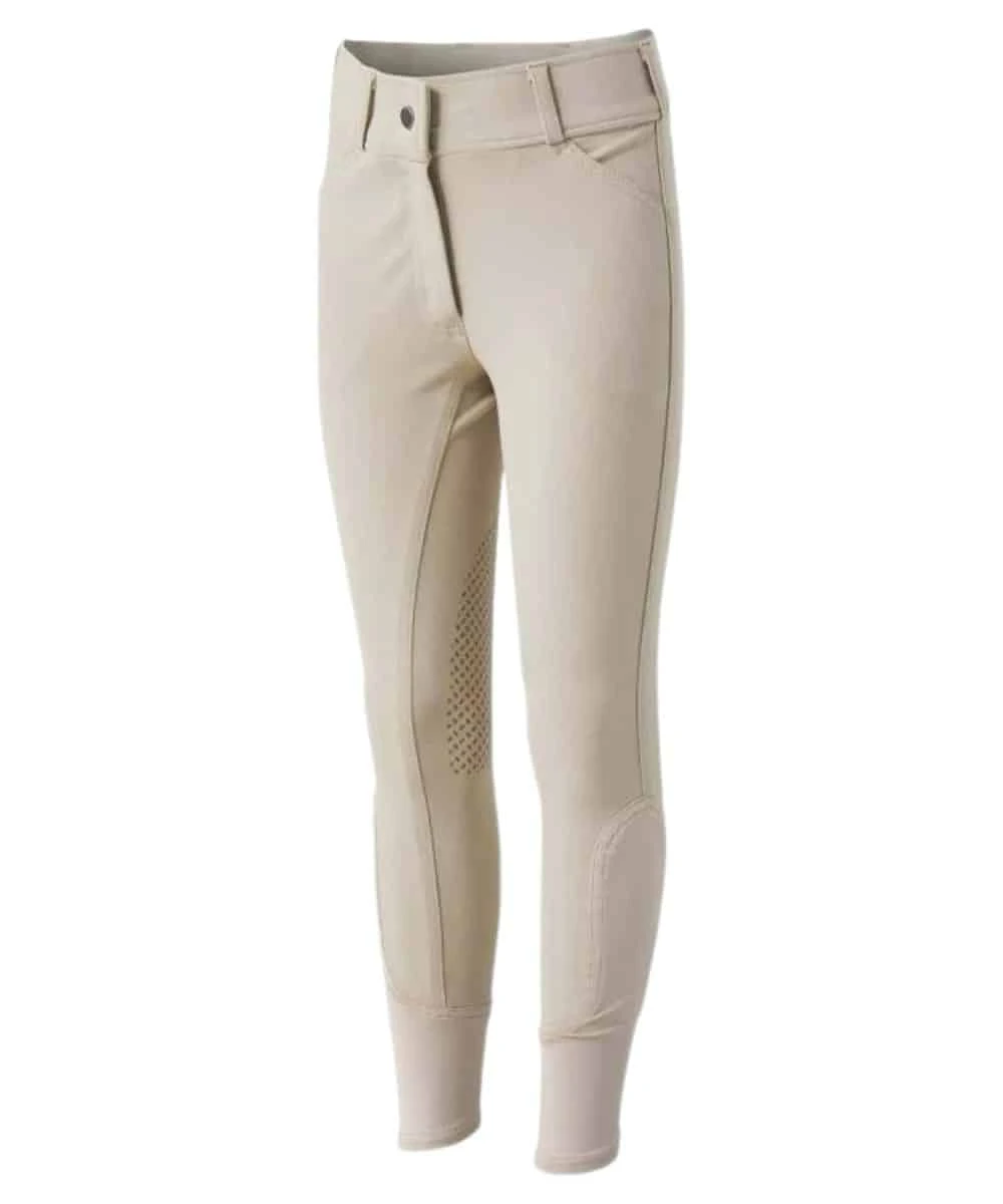 60% Cotton/32% Nylon/8% Spandex; Fitted; Mid Rise; Fly With Button Closure; Belt Loops; Front Pockets; Silicone Knee Patch Grips; Traditional English Breeches; Color: Tan; Style #347037