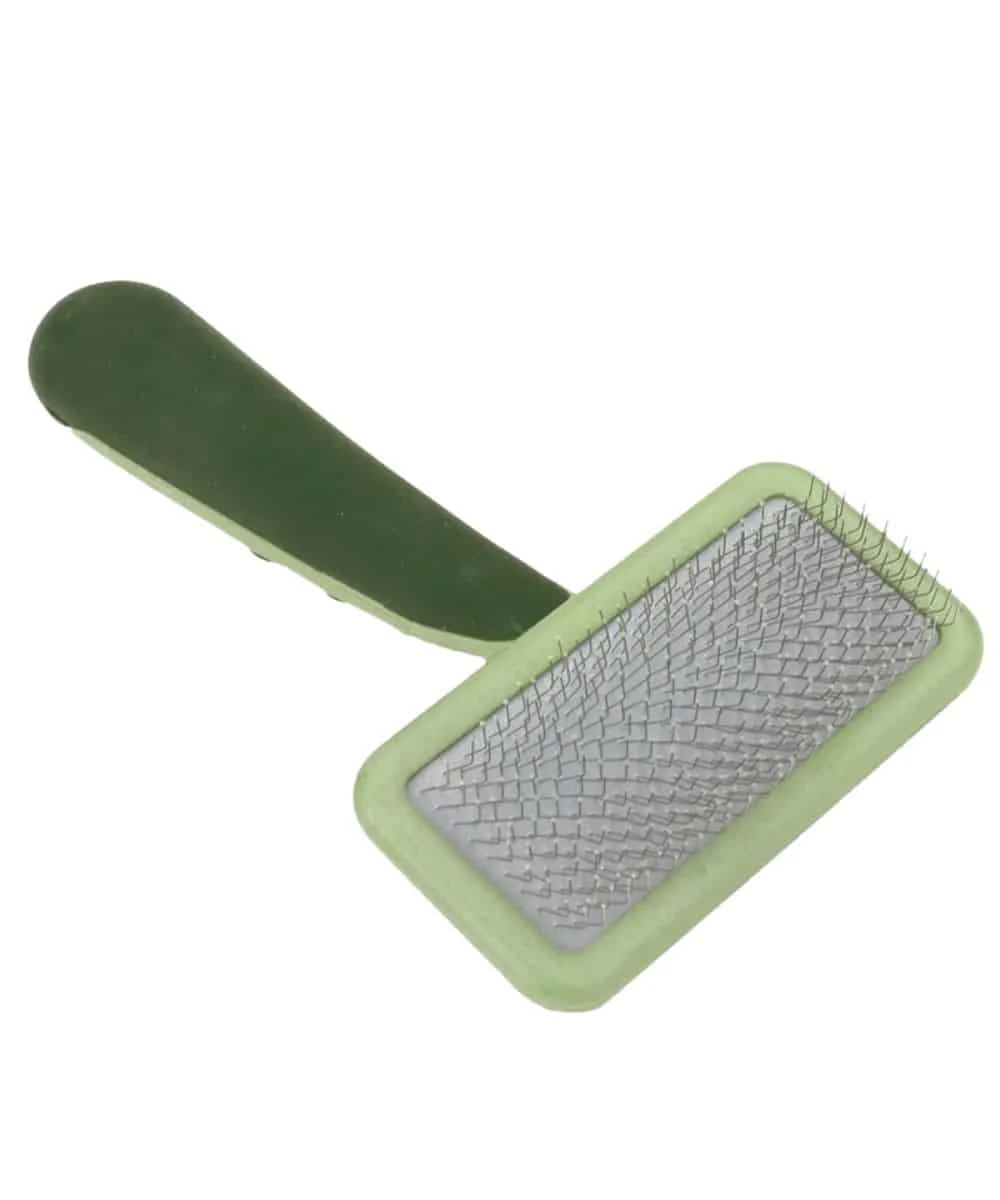 Small Dog Brush; High-Quality Brush Helps Reduce Shedding For A Healthy Coat And Fur-Free Home; Ergonomic, Non-Slip Grip Makes Grooming Easy; Stainless Steel Pins Are Designed To Remove Mats, Tangles, And Loose Hair In An Effortless Way; Ideal For Everyday Use On All Coat Types; Color: Green; Style #13821-1