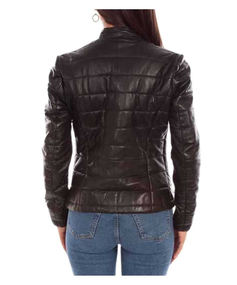 Lamb Leather; 100% Polyester Lining; Long Sleeves; Full Zip Front Closure; Zippered Hand Pockets; Stitched Design; Color: Black; Style #L1082
