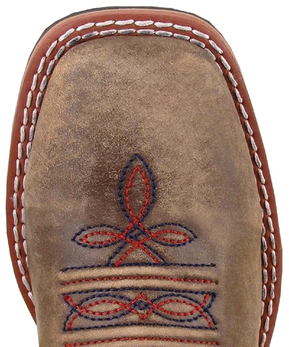 Leather Boot; Vintage Brown Vamp; U.S. Flag Stars And Stripes Shaft; Leather Pull Tabs And Pull Holes For Easy On; Double Stitch Welt; Rubber Outsole; Square Toe; Color: Brown; Style #3880Y
