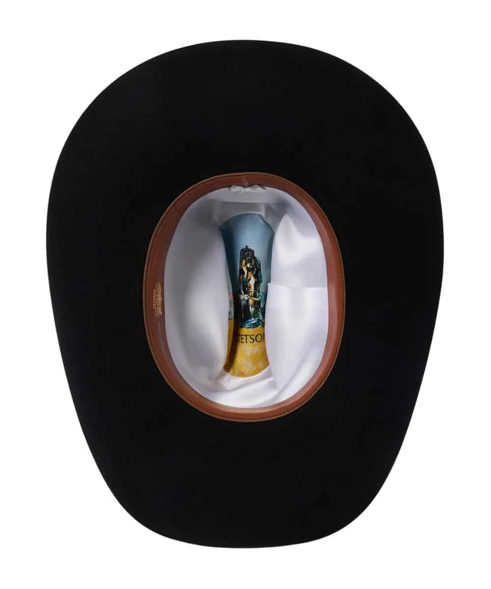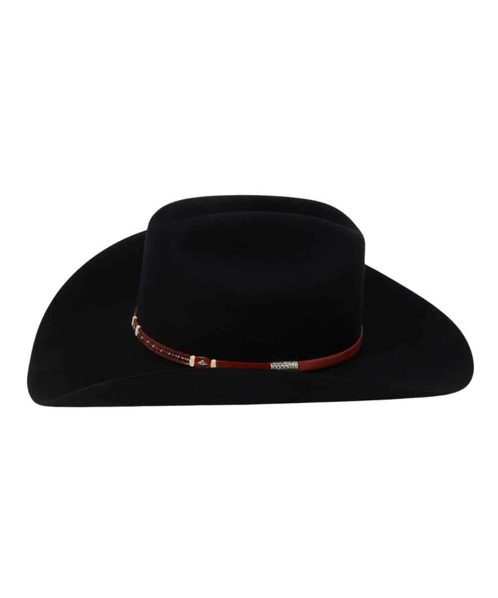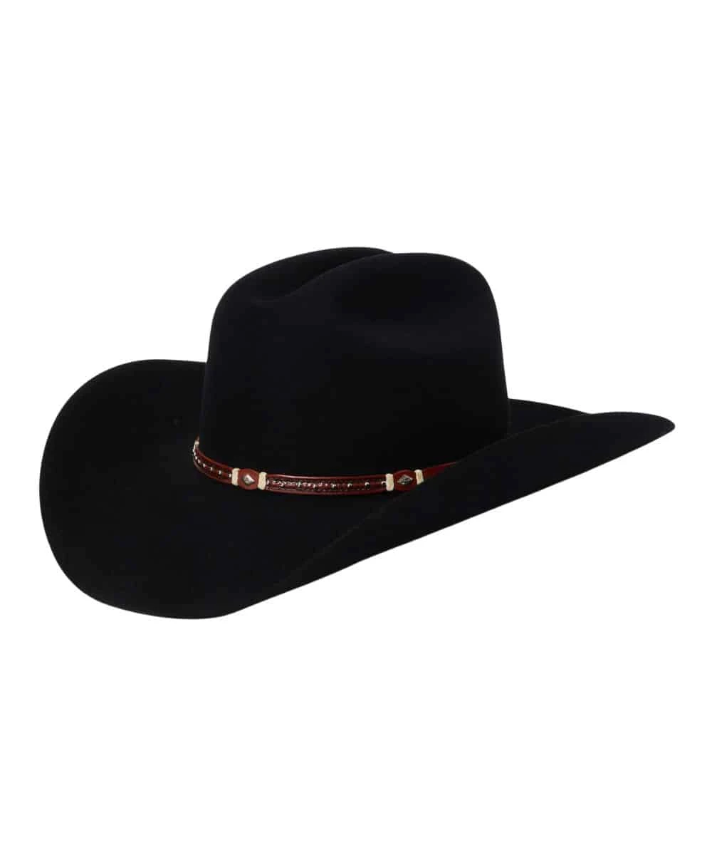 6X Quality Fur Felt; 4 1/4″ Cattleman Crown; Rugged Tooled Leather Hat Band With Silver Tone Conchos; 4 1/4″ Brim; Full Satin Liner; Genuine Leather Sweat Band; Made In The USA; Color: Black; Style #SFMNTYT7242 BLK