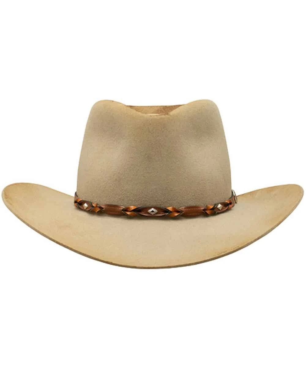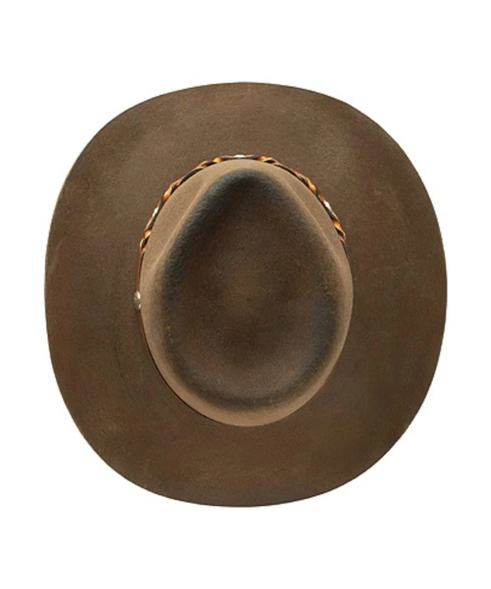 Weston Outdoor Collection; Rigid Wool Felt Construction; 4″ Pinch Front Crown; 3 1/2″ Brim; Distressed Details For A Worn-In Look; Rich Brown Leather Hat Band Accented With Silver Studs; Dri-Lex Sweatband; Style #OWWSTN-8132