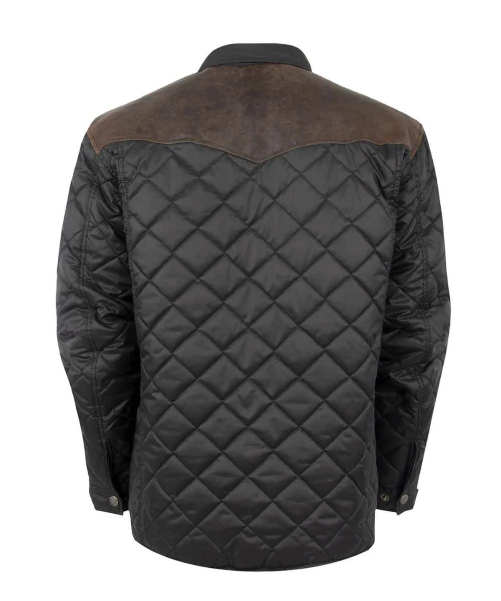 100% Polyester Quilted Shell; Long Sleeves; Spread Collar; Zip And Snap Front Closure; Snap Cuffs; Single Point Snap Flap Chest Pockets; Brown Leather Western Yoke; Zippered Hand Pockets; Insulated Satin Lining; 1 Interior Pocket; Color: Black; Style #STS9781