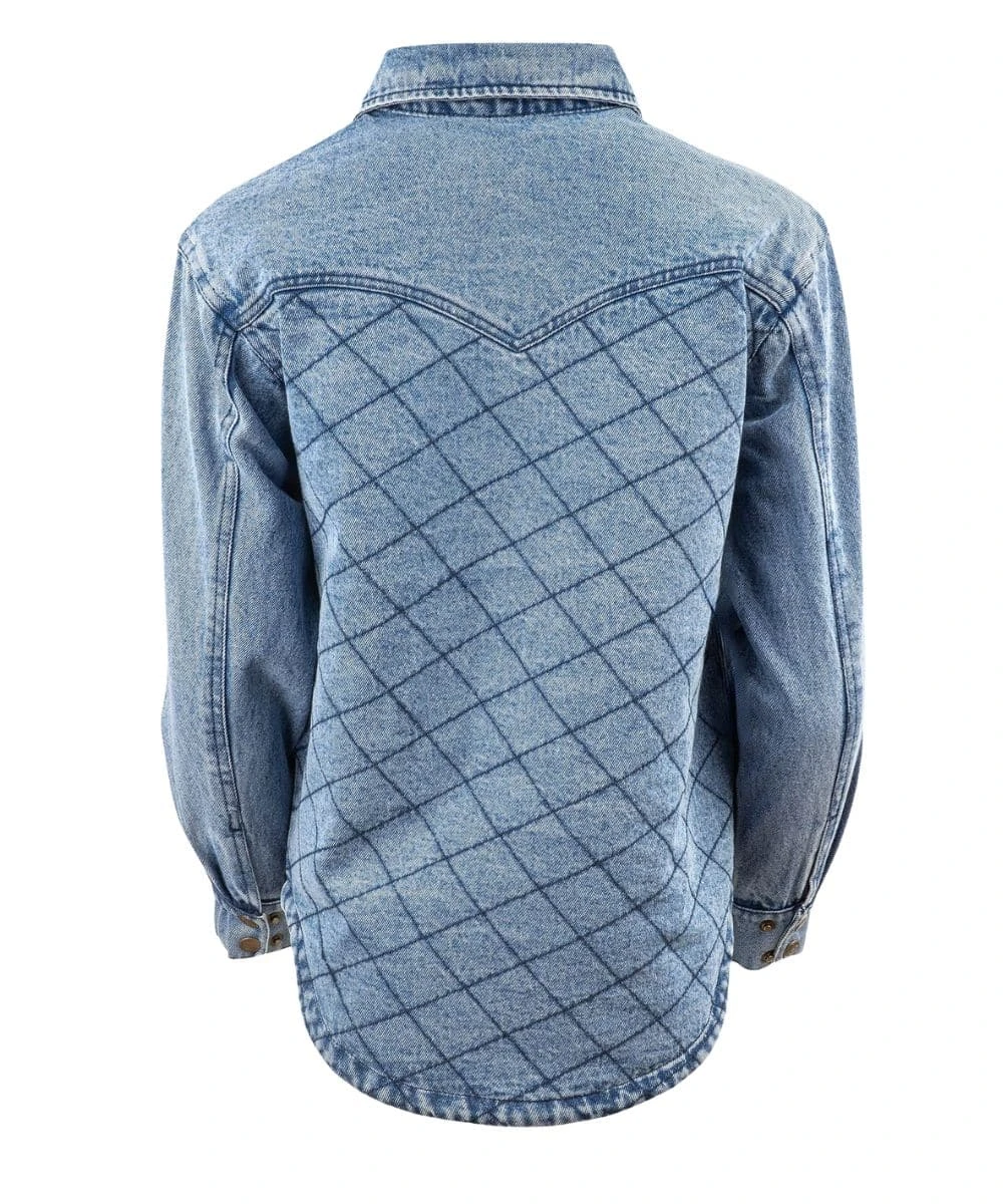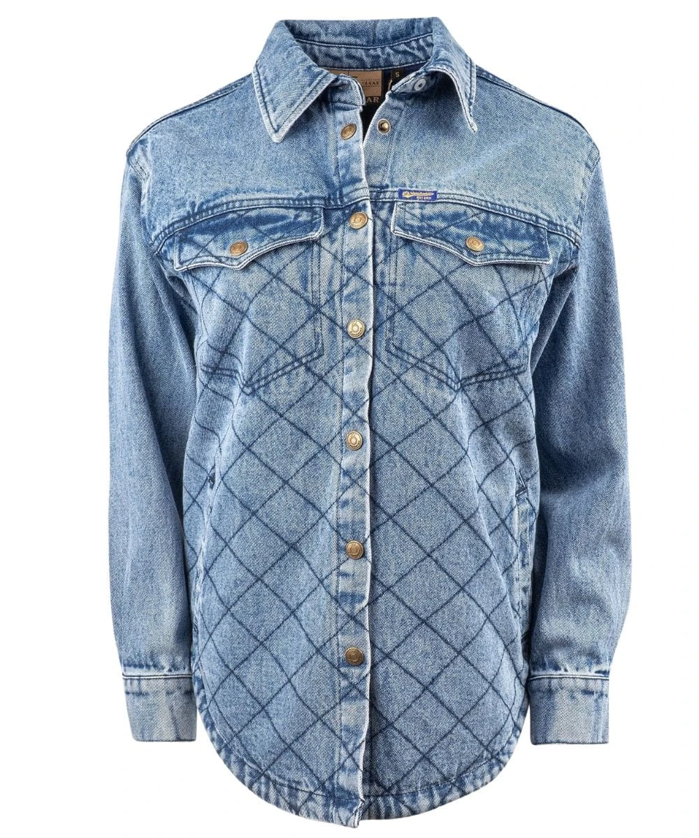 100% Cotton; Classic Denim Jacket; Long Sleeves; Spread Collar; Snap Front Closure And Cuffs; Single Point Snap Flap Chest Pockets; Straight Front Yokes; Single Point Back Yoke; 2 Hand Warming Pockets; 2 Interior Pockets; Quilted Lining; Quilted Contrast Stitched Accents; Color: Denim; Style #STS9829
