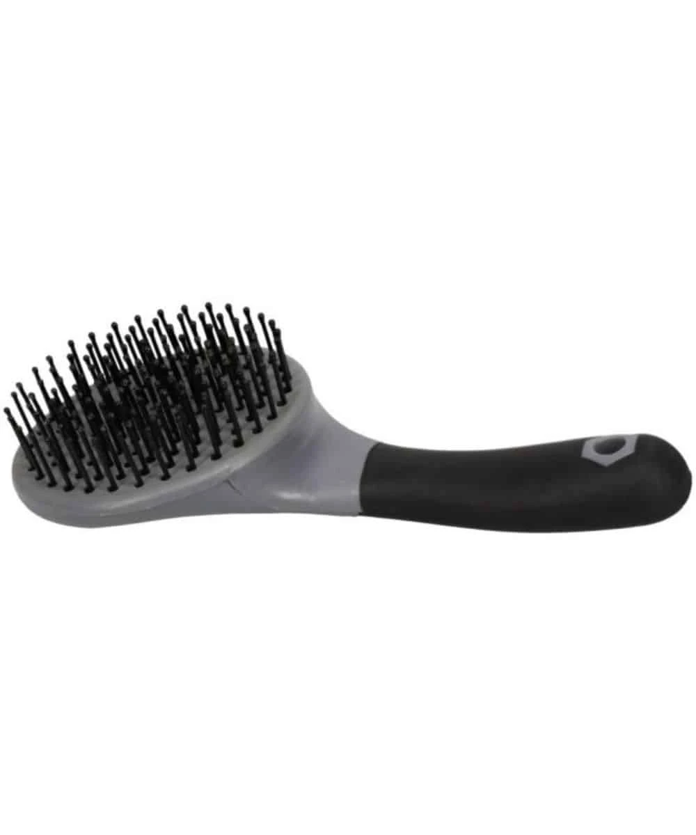 Large, Round Head; Ergonomically Designed Comfort Handle; Raised Bumps To Reduce Fatigue; Helps Detangle Mane And Tail; Sleek Round Head Features Stiff Short Bristles That Are Perfect For Grooming Coarse Hair; 9″ Long; Color: Grey; Style #68-907-25-0