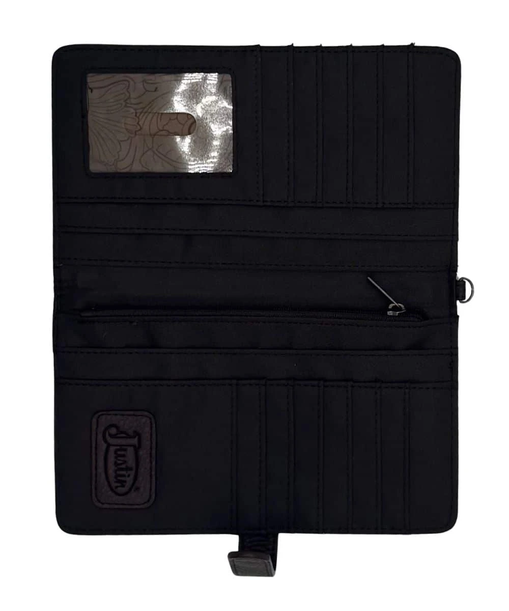 Large Wallet; Tan Aztec Blanket; Snap Closure; 12 Card Slots; 1 ID Window; 5 Slip Pockets; 1 Zipper Pocket; Removable Wristlet Strap; Measures Approximately: 7.5″ W x 4.75″ H; Style #24184516W