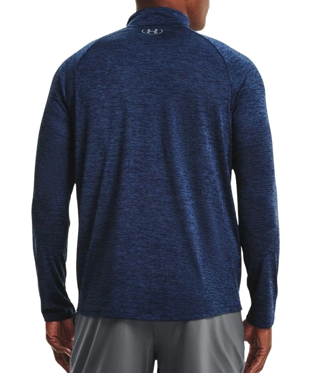 100% Polyester; Long Sleeves; Mock Collar; Generous 1/2 Zip Closure Makes For Easy Layering; Steel Gray Logo On Chest; New Streamlined Fit And Shaped Hem; Material Wicks Sweat And Dries Really Fast; UA Tech Fabric Is Quick Drying, Ultra Soft, And Has A More Natural Feel; Fuller Cut For Looser Fit And Complete Comfort; Color: Navy/Academy; Style #1328495-409