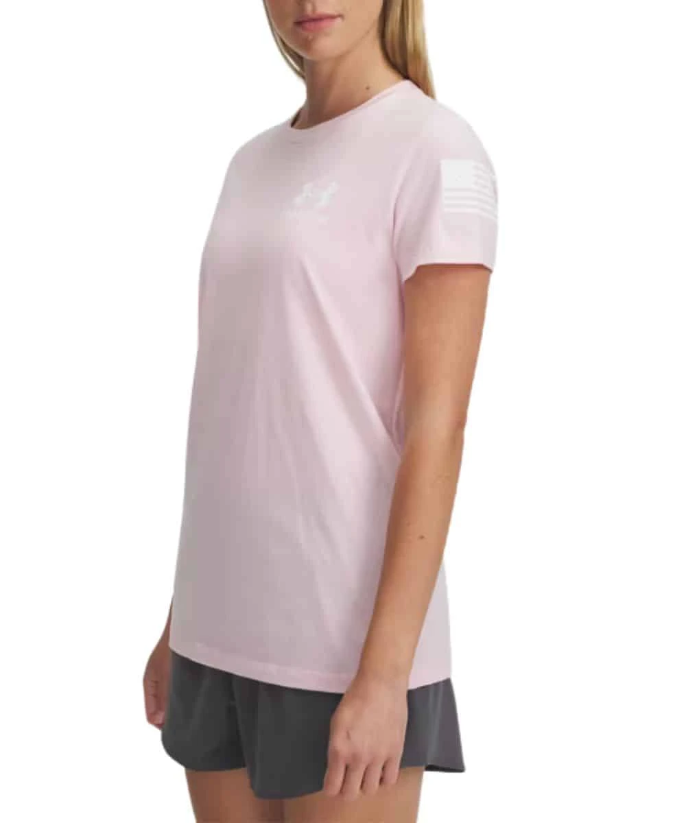 60% Cotton/40% Polyester; Loose Fit; Short Sleeves; Crew Neck; Ribbed Collar; Small White Freedom Logo On Chest; White American Flag Screen Printed On Sleeve; Large White Flag Freedom Screen Printed On Back; Super-Soft, Cotton-Blend Fabric Provides All-Day Comfort; Fast-Drying; Color: Prime Pink; Style #1370819-647