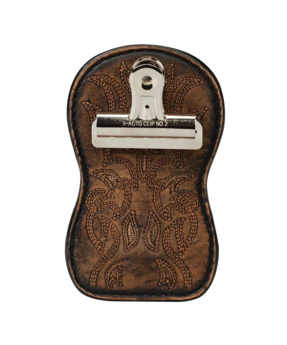 Leather Construction Featuring Fashion Stitching; Nickel Plated Clip That Keeps Your Show Number Securely In Place; This Eye Catching Number Holder Offers A Touch Of Unique Style In The Show Ring; Easily Slides On Or Attaches To Your Belt; Measures Approximately: 3 1/8″ W x 5″ H; Color: Frontier; Style #80-0980-616