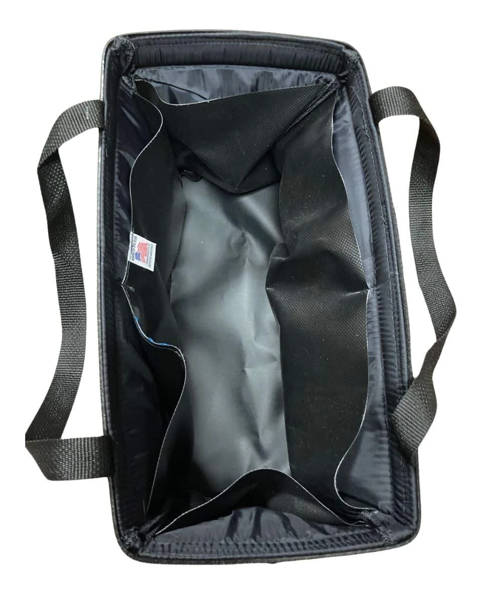 600 Denier Polyester; Vinyl Backing; Mesh Pocket On Front; Handles On Top; Padded Interior; 6 Interior Open Pockets; Measures Approximately: 15″ x 8″ x 9″; Made In USA; Style #G300