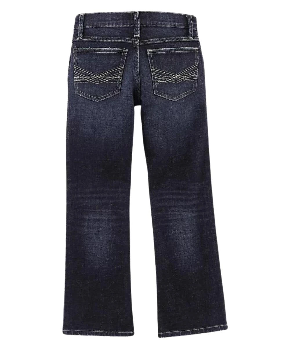 99% Cotton/1% Spandex; Slim Fit; Zip Fly With Button Closure; Internal Adjustable Waistband; Whisker And Fading Detail; Five Pocket Styling; Fashion Stitched Back Pockets; Bootcut Jean; Dark Wash; Color: Bowden; Style #112338559