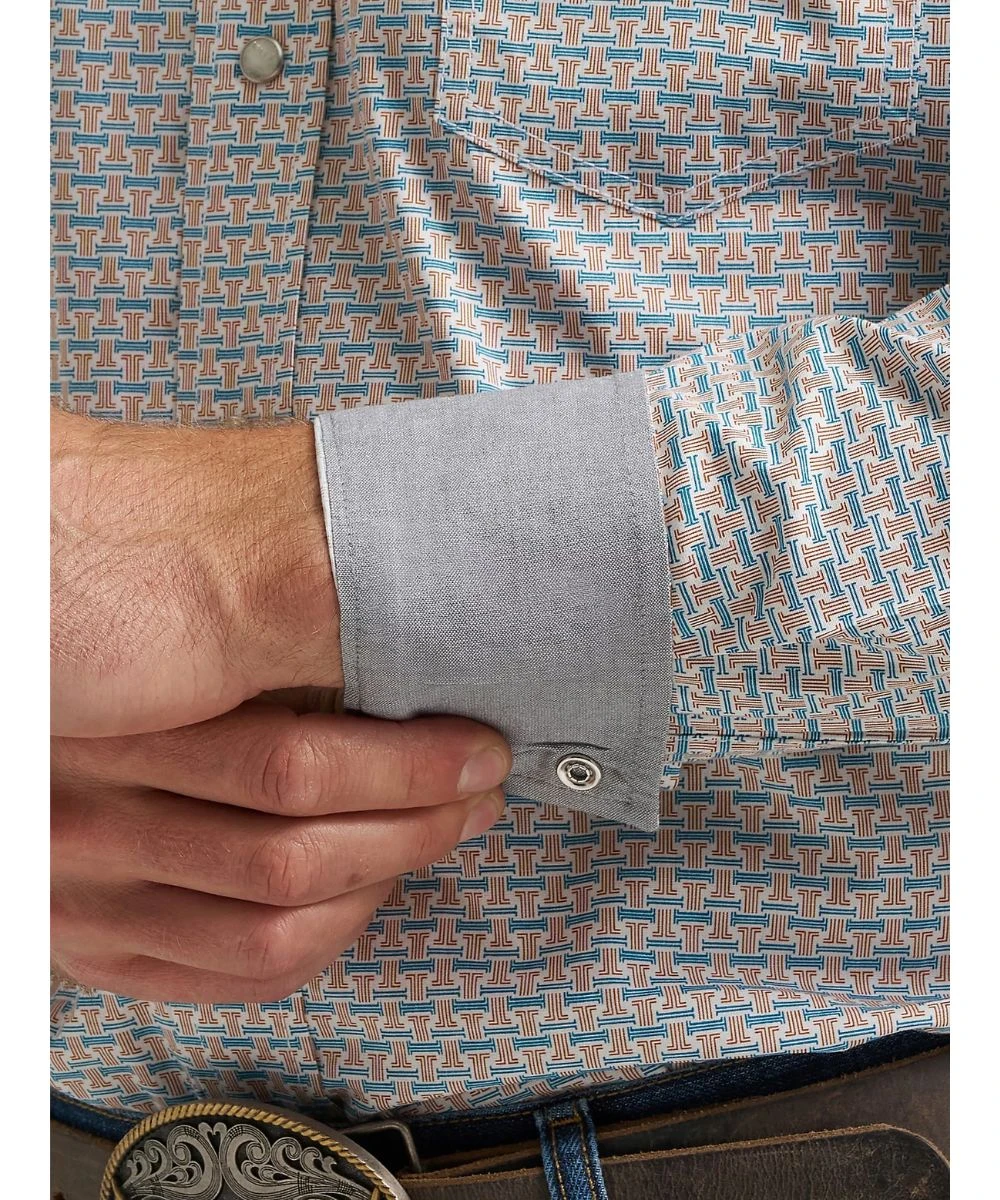 98% Cotton/2% Spandex; Competition Advanced Comfort; Classic Fit; Long Sleeves; Spread Collar; Snap Front Placket And Cuffs; Single Point Snap Flap Chest Pockets; Single Point Western Yokes; Contrast Interior Trim; Rustic Brown T Print; Color: Brown; Style #112367939