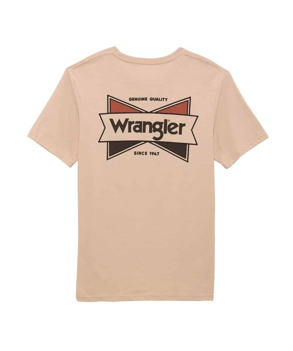 50% Cotton/50% Polyester; Regular Fit; Short Sleeves; Crew Neck; Small Screen Printed Logo On Front Chest; Large Logo Graphic On Back Reads: “Genuine Quality Since 1947”; Color: Tan/Moonlight Heather; Style #112361643