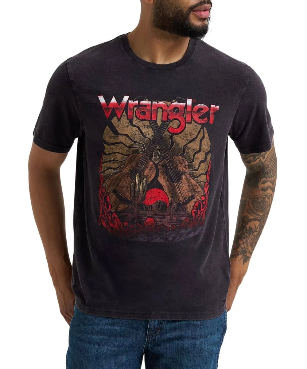 100% Cotton; Regular Fit; Short Sleeves; Crew Neck; Front Screen Printed Logo With Guitar Graphic; Heathered Mineral Wash; Color: Black Beauty; Style #112365652