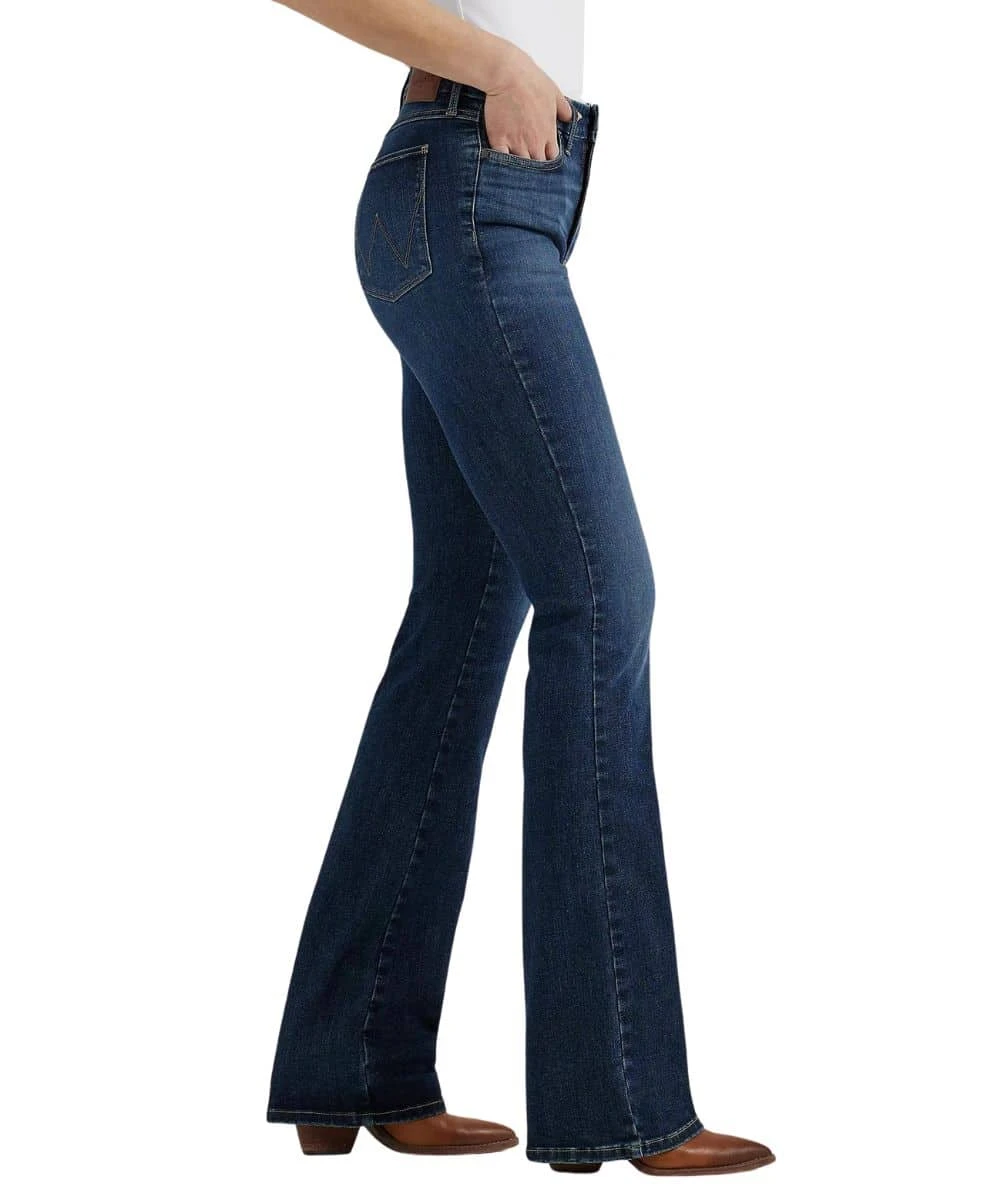 72% Cotton/23% Polyester/5% Lycra; Regular Fit; High Rise (10 3/8″ Front Rise); Zip Fly With Button Closure; Whisker And Sanding Details; Five Pocket Styling; “W” Stitched Back Pockets; Boot Cut Leg; Color: Lacey; Style #112359277