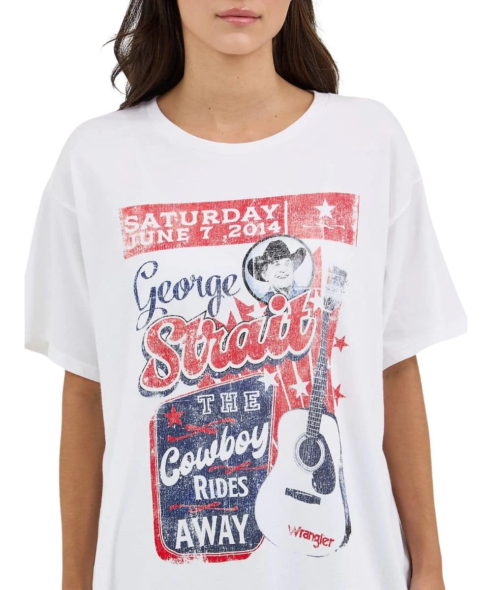 100% Cotton; Oversized Fit; Short Sleeves; Crew Neck; Ribbed Collar; Dropped Shoulders; Retro-Inspired George Strait Graphic Printed On Front; Color: Bright White; Style #112361056